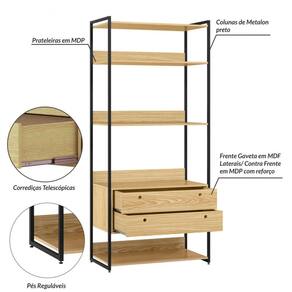 - Quantidade de Portas: Não possui - Tipo de Closet: Modulado - Material: MDF e MDP - Acompanha Porta?: Não - Peso do Produto Montado: 46 - Peso Máximo Suportado: 60 - Medida do Produto Montado (LXCXA): 47cmX143,2cmX200cm - Quantidade de Pés: 8 - Tipo de Pés: De Metal e Plástico - Tipo de Porta: Não Possui - Quantidade de Prateleiras: 10 - Tipo de Prateleira: Fixa - Recomendações de manutenção: Pano úmido. Não aplicar lustra móveis. - Volumes: 5 - Garantia: 3 Meses - Acabamento: Pintura UV - Escala de Brilho: Acetinado - Material da Estrutura: MDF E MDP 15MM - Produto Necessita de Montagem?: Sim - Quantidade de Gaveta: 4 - Tipo de Gaveta: Com Corrediça Telescópica