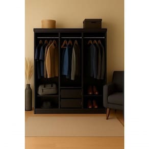 O Closet Lisboa é o produto ideal para quem busca organização e elegância no dormitório. Com gavetas e prateleiras, oferece espaço para acessórios pessoais e roupas penduradas, proporcionando um ambiente mais agradável e sofisticado.