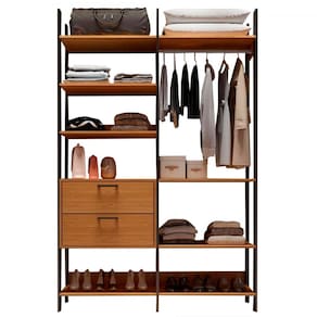 O(a) Closet Marselha 100% Mdf 2 Gavetas 8 Prateleiras Freijó/Preto - Loja é produzido em 100% MDF na escala de brilho Fosco, e possui um grau de dificuldade de montagem: Médio.