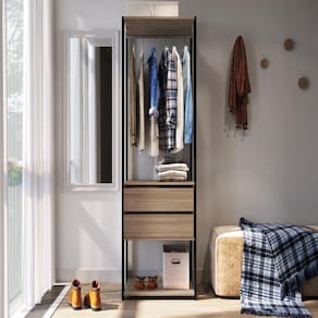 O Closet ProDecor é excelente para organizar suas roupas e manter o ambiente bonito e confortável. Feito em MDP e Aço nas cores Preto com Montana. Contém 2 Gavetas, 3 Prateleiras e 1 Cabideiro para se adaptar melhor ao seu quarto e agregar beleza ao cômodo. Tornando-se uma ótima escolha para quem busca praticidade e elegância!