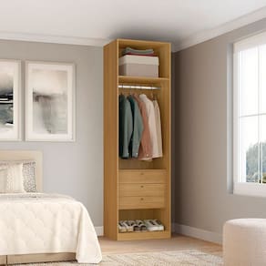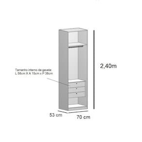 A linha modulada Altezza é a opção ideal para você organizar o seu cômodo da forma que quiser, otimizando os espaços com móveis sofisticados, resistentes e de qualidade! O Closet com Gavetas 70cm Altezza é produzido 100% em MDF de 15cm (estrutura, gavetas e divisões internas) e pintura texturizada com 7 camadas (que confere maior resistência à riscos e batidas). Com design inspirado nas tendências dos móveis planejados, seu grande diferencial é a altura de 2,40m (uma das maiores do mercado) e sua excelente divisão interna para melhor organização e disposição dos seus pertences. As gavetas são equipadas com corrediças telescópicas, que garantem melhor deslizamento e maior durabilidade. Acabamento da Prateleira: Pintura Texturizada UV Acabamento da Gaveta: Pintura Texturizada UV Ambiente Principal: Quarto codigo_ean: 7900288193285 Complexidade da Montagem: Média: pode ser montado por mais de uma pessoa e/ou necessite de maior conhecimento para montagem Composição: MDF Cor: Freijó Cor do Produto: Freijó Cor Interna: Marrom Escala de Brilho: Fosco Espessura do Material da Estrutura: 15 mm Gaveta com Chave: Não Itens Inclusos: 1 Guarda-Roupa, Kit Ferragens e Manual de Montagem Linha ou Coleção: Altezza Manual de Montagem e Instalação: https://product-hub-prd.madeiramadeira.com.br/112574144/documents/0f4b9117-c575-4a33-96e7-520db0340eaa3059195559817520632021238.pdf Marca: Belmax Material da Gaveta: MDF Material da Prateleira: MDF Material Principal: MDF Necessita Montagem: Sim O Módulo Pode ser utilizado individualmente: Sim Origem do Produto: Nacional Peso: 44 kg Peso Máximo por Gaveta: 10 kg Peso Máximo por Prateleira: 10 kg Possui Espelho: Não Possui Pés: Não Possui Portas: Não Possui Prateleiras: 01 Recomendações de Uso, Manutenção e Limpeza: Utilizar pano seco. Sistema de Montagem: Parafusos, cavilhas. Tipo de Corrediça da Gaveta: Metálica Telescópica Tipo de Módulo: Closet Tipo de Puxador da Gaveta: Externo