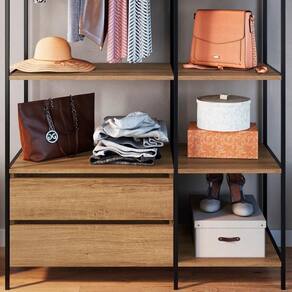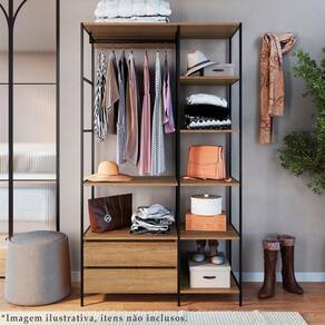 Closet Roupeiro Industrial 02 Gvt 180 Cm P1025, possui design em alta e espaço de sobra para você armazenar suas peças de roupa com estilo. Possui estrutura em aço e MDP de 15 mm, 02 gavetas com frente passante e corrediças metálicas, 06 prateleiras e um cabideiro, sua base conta com ponteiras plásticas, evitando riscos no chão de seu cômodo. Com sua estética atual e sua ilustre versatilidade, ele irá agregar tanto na decoração, quanto na praticidade ao guardar seus itens. Este móvel chegará na sua casa separado em 01 volume.