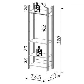 - Peso Suportado nas Prateleiras:: 15 Kg