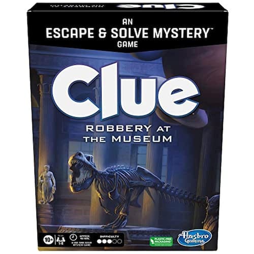O Sr. Boddy contratou você para participar de um assalto! A missão? Roube 6 exposições inestimáveis do museu, depois saia e seja pago. Mas alguém em sua tripulação é um traidor! Você e seus colegas jogadores são colocados à prova: trabalhem juntos para escapar do museu antes que os guardas cheguem, e descubram quem traiu a todos, o que eles roubaram e onde eles esconderam. O jogo de tabuleiro Clue Robbery at the Museum Escape & Solve Mystery oferece personagens clássicos de Clue e um mistério reimaginado para resolver em um jogo de escape room. Os jogadores movem seus peões ao redor do tabuleiro de jogo que é construído sala por sala, enquanto exploram as exposições do museu, desenham cartas, resolvem quebra-cabeças, desbloqueiam novas salas no museu e descobrem pistas. Depois de escapar, os jogadores revisam suas pistas para fazer uma acusação correta e vencer! Reúna amigos e familiares para uma noite de jogo que eles não esquecerão enquanto mergulham em uma experiência cinematográfica e única. Este jogo de escape room é para 1-6 jogadores, com idades entre 10 e mais de 10 anos, e é um grande presente para os fãs do jogo Clue e jogos de mistério. Hasbro Gaming e todas as marcas comerciais e logotipos relacionados são marcas comerciais da Hasbro, Inc.