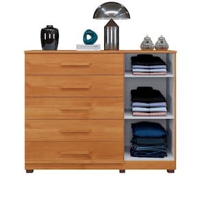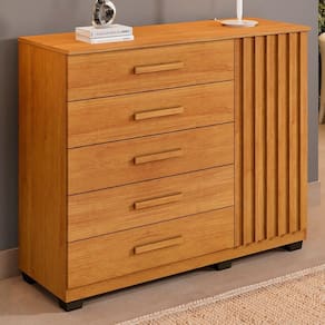 O(a) Cômoda França 1 Porta 5 Gavetas Cinamomo - Loja é produzido em MDP na escala de brilho Fosco, e possui um grau de dificuldade de montagem: Médio.