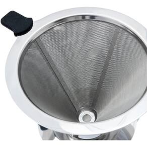 Coador De Café Pour Over Aço Inox - Não Precisa De Filtro Não necessita de filtros de papel Economize com um produto de alta qualidade feito pela mais renomada marca de produtos para café do mundo,A passagem da água pelo pó de café de maneira uniforme resulta em uma bebida mais suave, com doçura e acidez acentuadas adequadamente.A moagem do café deve ser média/fina e a quantidade ideal de pó é de 20/25 g para 400 ml de água, para 2 xícaras de café.Dicas: para obter melhores resultados, o tempo de preparo deve ser de aproximadamente 3 minutos. Despeje 100 ml de água fervida e mexa com uma colher pequena. Em seguida, despeje mais 200 ml da água e mexa novamente. Despeje o restante da água e mexa até acabar de coar. Está pronto.Características:material do Filtro: Aço InoxTamanho: 6 altura x 12,5 cm largura 10,5 diâmetro Marca: Fullcommerce