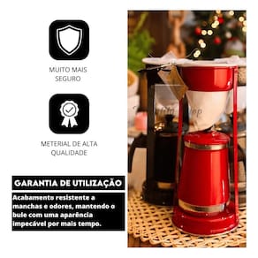 Mancebo Coador Para Café / Chá Retro Em Alumínio O mancebo e bule vem para para deixar seu começo do dia com muito mais sabor e com praticidade e ainda decora sua cozinha. Produto fabricado com alumínio de qualidade, tendo como objetivo atender as necessidades dos clientes para um preparo mais rápido economizando tempo e gás. Conteúdo: - 01 Bule - 01 Suporte - 01 Coador em Algodão CARACTERÍSTICAS; - Tipo: Mancebo de Alumínio - Altura do Bule: 15,5cm - Altura Total: 34,5cm - Capacidade: 1,3L - Material Alumínio - Acompanha Tampa - Material da Tampa: Alumínio - Alças em Baquelite Plástico antitérmico - Super Resistentes - Excelente Durabilidade - Não Enferruja Produto pode : Uso industrial, hotéis, restaurantes, escolas. Fogão a lenha, fogareiro, fogão de indução. SOBRE NÓS: Estamos no mercado desde 2011, com uma equipe de profissionais altamente qualificados, nossos produtos são rigorosamente vistoriados por eles para certificar que você receberá em seu lar somente produtos com altíssima qualidade. SOBRE NÓS: Estamos no mercado desde 2011, com uma equipe de profissionais altamente qualificados, nossos produtos são rigorosamente vistoriados por eles para certificar que você receberá em seu lar somente produtos com altíssima qualidade. DÚVIDAS FREQUENTES 1-quais as Garantias de 30 dias sobre qualquer defeito do produto 2-qual prazo de entrega Ainda tem dúvidas Pergunte sem constrangimento, basta utilizar o campo Perguntas ao vendedor logo abaixo do vendedor: 90 dias Marca: Não Informado