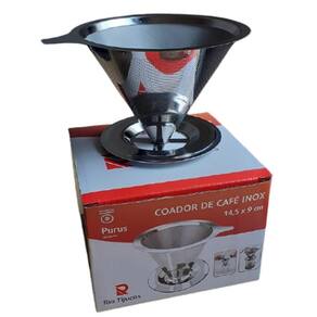 Coador Filtro Café Aço Inox Sem Uso De Filtro 14,5 cm x 9 cm Coador de Café Aço Inox medindo 14,5 cm x 9 cm sem uso de filtros.