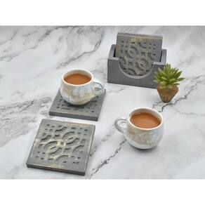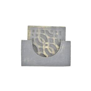 Conjunto STORE INDYA de 4 montanhas-russas quadradas de madeira com suporte para chá, café, cerveja, taças de vinho - acabamento cinza. Proteção de mesa para qualquer mesa. As montanhas-russas perfeitas para copos de bebida de qualquer tamanho