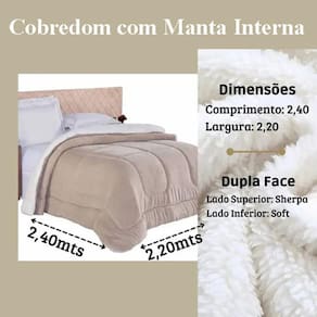 Coberdom Cobredom Manta Casal Queen Dupla Face Cobertor Cor 04 Coberdrom Casal Queen Sherpa Edredom Cobertor com Manta Interna Coberdrom Casal Queen Sherpa: Aconchego e Estilo em Um Só Item! Procurando a combinação perfeita de conforto e estilo para suas noites frias? Apresentamos o Coberdrom Casal Queen Sherpa, o auge do luxo e aconchego para suas noites de descanso. Descubra por que este é o item indispensável para o seu lar: 1. Dupla Face de Pura Delícia:Desfrute de duas opções de estilo em um único produto! Com sua dupla face, o Coberdrom Queen Sherpa oferece versatilidade para combinar com qualquer decoração, permitindo que você alterne entre dois looks incríveis. 2. Tecido Superior de Microfibra Soft Felpuda:Cada toque será uma experiência de conforto sublime. O tecido superior em microfibra soft felpuda é suave ao toque, proporcionando uma sensação de aconchego que acalma seus sentidos. 3. Sherpa Extremamente Macia Estilo Lã:A tecnologia Sherpa é sinônimo de calor e suavidade. A camada de Sherpa extremamente macia estilo lã garante um abraço de conforto e calor durante as noites mais frias, tornando cada momento de relaxamento ainda mais especial. 4. Manta Interna de 130 GSM para Máxima Proteção Contra o Frio:Enfrente o frio com confiança! A manta interna de 130 GSM proporciona uma barreira protetora contra temperaturas geladas, mantendo-o aquecido e aconchegante, mesmo nas noites mais rigorosas. 5. Cores Lindas que Se Destacam:Escolha entre uma variedade de cores deslumbrantes que vão dar vida ao seu quarto. Essas cores vibrantes não apenas aquecerão o ambiente, mas também adicionam um toque de estilo e elegância à sua decoração. 6. Tamanho Generoso para Sua Cama Queen:Com dimensões de 2,20 de largura por 2,40 de comprimento, o Coberdrom Queen Sherpa se adapta perfeitamente à sua cama queen size, proporcionando cobertura total e conforto sem igual. 7. Fácil de Cuidar:Mantenha a beleza e a qualidade do seu Coberdrom Sherpa com facilidade. O material é resistente a manchas e lavável à máquina, tornando a manutenção uma tarefa simples e conveniente. Transforme suas noites em uma experiência de luxo e conforto com o Coberdrom Casal Queen Sherpa. Não deixe escapar essa oportunidade de elevar o nível de aconchego no seu lar. Peça o seu agora e descubra o verdadeiro significado de relaxamento e estilo combinados! Adquira Já o Seu Coberdrom Casal Queen Sherpa e Desperte para o Puro Aconchego! Podem ocorrer pequenas variações de cor entre a foto do produto e o monitor ou tela que você esteja visualizando, produto pode chegar um pouco mais claro ou escuro Marca: TEXFINE TÊXTIL