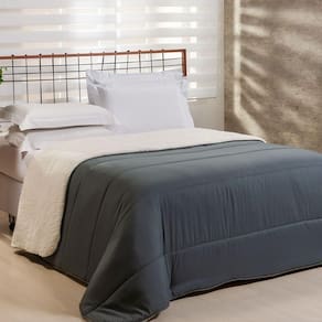 Estilo que Renova: Com um lado em Percal e outro com a textura da Sherpa, você pode mudar a decoração do quarto facilmente, criando um ambiente moderno e convidativo.