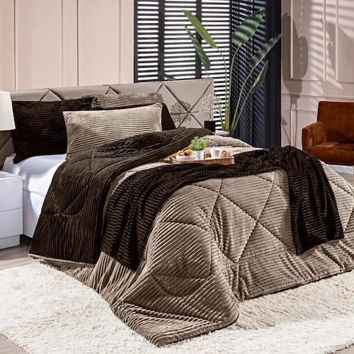 Kit Coberdrom Canelado Dupla Face Denver Solteiro 02 Peças - Manta Microfibra Canelada Cor Caqui A nova coleção de coberdrons Denver traz toda a sofisticação e aconchego. Por possuírem dupla face, apresentam superfície que valoriza ainda mais as cores! Confeccionado em pantográfica computadorizada com lindos desenhos geométricos. Novidade e tendência para o inverno desse ano, o coberdrom é composto de Manta Canelada Microfibra, com aquele toque incrível que conforta e aquece nas noites mais frias. Composição feita em poliéster com 150gr de enchimento, maravilhoso, sofisticado e extremamente macio, perfeito para aquecer, acompanhando também os dois porta-travesseiros canelados com Zíper. Ideal para decorar, trazer conforto e tornar o quarto ainda mais convidativo e elegante! Confira! Contém:01 Coberdrom Solteiro 2,40m x 1,80m01 Porta Travesseiro Canelado 70cm x 50cm OBS: Demais itens da foto são vendidos separadamente Composição:Manta Microfibra Canelada: 100% PoliésterEnchimento: 100% Poliéster Instruções de Uso e Lavagem:Vide etiqueta do produto. Atenção:Foto meramente ilustrativa.Variação das cores podem ocorrer de acordo com o monitor.