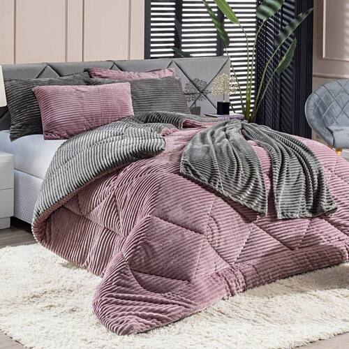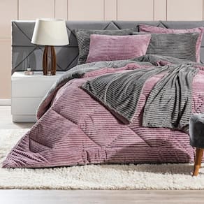 Kit Coberdrom Canelado Dupla Face Denver Solteiro 02 Peças - Manta Microfibra Canelada Cor Rosê A nova coleção de coberdrons Denver traz toda a sofisticação e aconchego. Por possuírem dupla face, apresentam superfície que valoriza ainda mais as cores! Confeccionado em pantográfica computadorizada com lindos desenhos geométricos. Novidade e tendência para o inverno desse ano, o coberdrom é composto de Manta Canelada Microfibra, com aquele toque incrível que conforta e aquece nas noites mais frias. Composição feita em poliéster com 150gr de enchimento, maravilhoso, sofisticado e extremamente macio, perfeito para aquecer, acompanhando também os dois porta-travesseiros canelados com Zíper. Ideal para decorar, trazer conforto e tornar o quarto ainda mais convidativo e elegante! Confira! Contém:01 Coberdrom Solteiro 2,40m x 1,80m01 Porta Travesseiro Canelado 70cm x 50cm OBS: Demais itens da foto são vendidos separadamente Composição:Manta Microfibra Canelada: 100% PoliésterEnchimento: 100% Poliéster Instruções de Uso e Lavagem:Vide etiqueta do produto. Atenção:Foto meramente ilustrativa.Variação das cores podem ocorrer de acordo com o monitor.