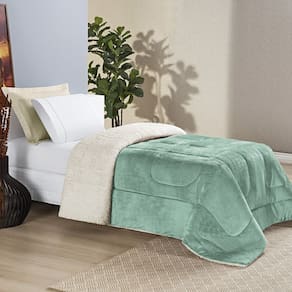 Coberdrom Casa Scarpa Apollo Solteiro Sherpa Manta Flannel Toque Lã de Carneiro - Verde Alecrim