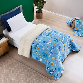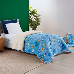 Coberdrom Fantasy, produto confeccionado em Tecido Sherpa e Manta Flannel Microfibra, sensação de Toque de Lã de Carneiro. Opção perfeita para decorar e se aquecer no inverno. Em estampas temáticas e divertidas que vão complementar a decoração do quarto do seu pequeno.