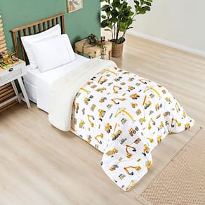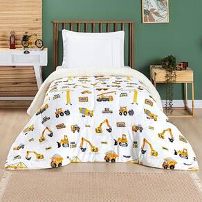 Coberdrom Cobertor Lutti Solteiro Quarto Cama Infantiil Sherpa Manta Toque Lã de Carneiro Trator Caminhão Branco - Única