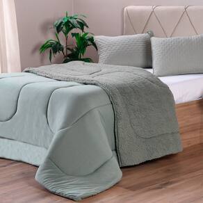 Coberdrom Duetto Tinto Queen Malha 100% Algodão 220x230cm Suculenta - Malha 100% Algodão 125g/m², Fio Penteado, Sherpa 100% Poliéster 180g/m², Enchimento 180g/m²