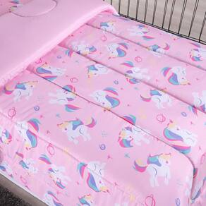 Coberdrom Edredom Solteiro Alegria Unicórnio Top - 100% Poliéster Edredom Coberdrom Alegria Solteiro com Lindas Estampas
