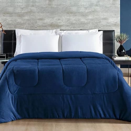 Coberdrom em Malha e Manta Soft Queen Dupla Face Marinho O Coberdrom Malha envolve e aquece, trazendo conforto e aconchego para as noites frias. Felpudo e com macio, é quentinho e sofisticado, valorizando a decoração do ambiente. Aposte no Coberdrom Malha para ótimas noites de descanso. É dupla face, uma delas sendo Mantinha Flannel, brilhante e super macia e a de malha 100% Algodão Malha 100% AlgodãoMalha Fio 30/1 PenteadoManta FlannelTotalmente Matelado O Que Vai Na Embalagem: Queen 01 Coberdrom 2,40m X 2,20m Composição: Tecido Malha: 100% AlgodãoEnchimento: 100% PoliésterManta Microfibra: 100% PoliésterRecomendações gerais para conservação de sua peça: - Lavável em casa, mas verifique a capacidade de sua lavadora.- Temperatura máxima de lavagem 30C, processo de lavagem normal.- Usar sabão em pó e amaciante com moderação.- Cuidado com as misturinhas caseiras, elas podem manchar o produto.- Não usar alvejante.- Não é permitido secagem na máquina.- Não passar a ferro.- Secar em superfície plana.- Secar à sombra- Antes de realizar a lavagem do produto, sugerimos que separe as peças coloridas e claras, para diminuir as chances de sua peça manchar. A cor do produto é exatamente igual a foto - A cor pode modificar um pouco de aparelho para aparelho, apesar disso não interfere na beleza do produto. Marca: Nathalia Enxovais