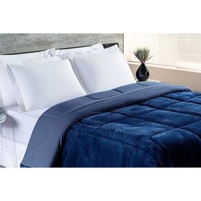 Coberdrom em Malha e Manta Soft Queen Dupla Face Marinho O Coberdrom Malha envolve e aquece, trazendo conforto e aconchego para as noites frias. Felpudo e com macio, é quentinho e sofisticado, valorizando a decoração do ambiente. Aposte no Coberdrom Malha para ótimas noites de descanso. É dupla face, uma delas sendo Mantinha Flannel, brilhante e super macia e a de malha 100% Algodão Malha 100% AlgodãoMalha Fio 30/1 PenteadoManta FlannelTotalmente Matelado O Que Vai Na Embalagem: Queen 01 Coberdrom 2,40m X 2,20m Composição: Tecido Malha: 100% AlgodãoEnchimento: 100% PoliésterManta Microfibra: 100% PoliésterRecomendações gerais para conservação de sua peça: - Lavável em casa, mas verifique a capacidade de sua lavadora.- Temperatura máxima de lavagem 30C, processo de lavagem normal.- Usar sabão em pó e amaciante com moderação.- Cuidado com as misturinhas caseiras, elas podem manchar o produto.- Não usar alvejante.- Não é permitido secagem na máquina.- Não passar a ferro.- Secar em superfície plana.- Secar à sombra- Antes de realizar a lavagem do produto, sugerimos que separe as peças coloridas e claras, para diminuir as chances de sua peça manchar. A cor do produto é exatamente igual a foto - A cor pode modificar um pouco de aparelho para aparelho, apesar disso não interfere na beleza do produto. Marca: Nathalia Enxovais