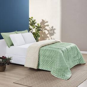 Coberdrom Estampado Sherpa E Flannel Petit Poá King 01 Peça Manta Alta 150g - Salvia