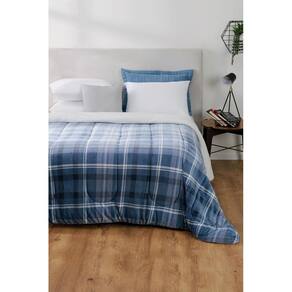 Coberdrom Fleece Dupla Face Casal 2,00Mx2,20M Xadrez Azul - Verde