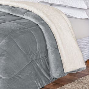 Coberdrom Pele De Carneiro Sherpa Everest Solteiro 01 Peça - Cinza O Coberdrom Everest é confeccionado com dois tecidos diferentes, de um lado ele possui o tecido sherpa no qual imita pele de carneiro, já do outro lado ele possui o tecido manta de microfibra. Proporcionando assim uma noite quentinha, de muito conforto e aconchego. Produto comporto por:01 Coberdrom 2,40m x 1,50m Composição tecido: 100% Poliéster Ean: 7908125109666