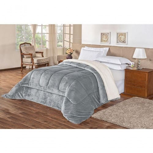 Coberdrom Pele De Carneiro Sherpa Everest Solteiro 01 Peça - Cinza