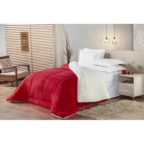 Coberdrom sherpa e manta soft felpuda microfibra queen - vermelho Coberdrom sherpa e manta soft felpuda microfibra
