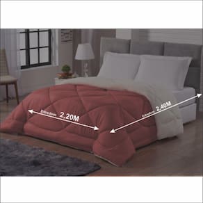 Marca: Casa Dona Modelo: Queen Acompanha lençol de baixo com elástico: Não Composição: 100% Poliéster Tamanho das peças: Coberdrom 240x220cm | 2,40x2,20m Embalagem para Envio: 80x60 Tamanho: 43 Comprimento| 30 Largura| 34 Altura Peso: 2,200kgs Observação: Lado liso com microfibra, e outro Sherpa, composto por Fibra sintética que faz lembrar lã de carneiro Itens Inclusos 01 Coberdrom 2,40 x 2,20m