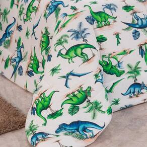 Especificações Produto: Coberdrom Tamanho: Solteiro Estampa: Dinossauro Cor: Verde Composição do tecido superior: Manta soft 180g/m Composição do tecido inferior: Malha 100% algodão - Fio 30.1 Composição do enchimento: Manta siliconada 100% poliéster Medidas: 2,20 x 1,60 m