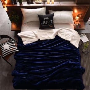 O que vem na embalagem: 1 Cobertor casal king dupla face de 280 x 280 cm x 400gr m - Espessura média em linhas de cobertores. Frente: Cor azul marinho - veludo molhado Costas: Cor off white - pele de carneiro sintético