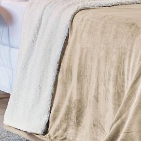 Cobertor Casal Queen Alaska Sherpa E Manta Microfibra 1 Peça - Cáqui Cobertor Alaska, produto confeccionado em Tecido Sherpa e Manta Microfibra, sensação de Toque de Lã de Carneiro.