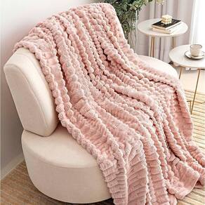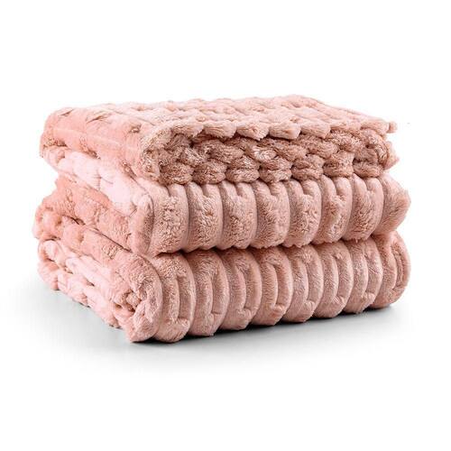 Cobertor Coberta Queen 2,40x2,20 Manta Ultrasoft Alto Relevo Extra Macia Blush Rosa - 100% Poliéster