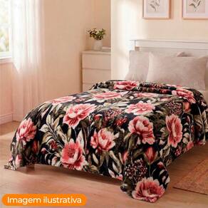 Cobertor de Casal Manta Microfibra Antialérgico 1,8x2,2m Marrom e Rosas Vermelhas - Camesa