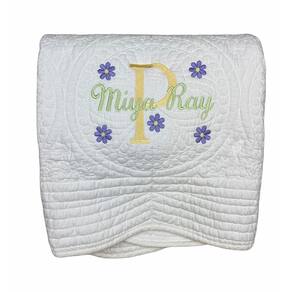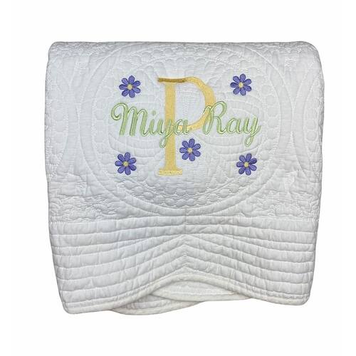 e é bordado pessoalmente por mim. As bordas são recortadas. Escolha 3 cores diferentes de linha para este estilo. Se você quiser ver o nome em uma maquete, envie-me um e-mail e verifique se há mensagens da Amazon. Eu sempre enviarei um e-mail de volta em um dia ou até mesmo em uma hora. Se houver algum erro ou uma pergunta, estou sempre disponível para trabalhar com você nesta colcha. Cada pessoa tem um certo gosto e estou disposto a trabalhar com você para encontrar o seu. Além disso, para verificar minhas mensagens, vá para “Minha conta”, role para baixo e clique em “Mensagens de vendedores da Amazon” sob o título “Comunicação e conteúdo”. Eu sempre respondo às mensagens, mas muitas vão para o seu spam, então verifique aqui. Obrigado :-) - Esta colcha tem 36 x 46 polegadas - Perfeita para ficar de barriga para baixo - lembrança - 100% algodão