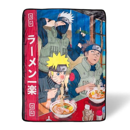 - Design de anime: inspirado na série de anime de sucesso Naruto, este cobertor apresenta ninjas de Konohagakure em seu tempo de inatividade. Apresenta Naruto Uzumaki, Kakashi Hatake e Iruka Umino desfrutando de um pouco de ramen.