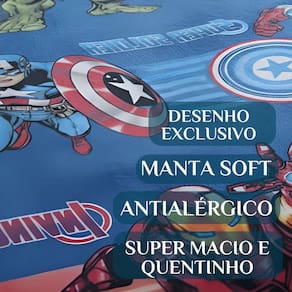 Cobertor Grosso Kids Marvel Antialégico Quentinho De Verdade Cor: MARVEL 1 Aqueça o sono das crianças com a força dos heróis da Marvel O Cobertor Grosso Kids Marvel Antialérgico é quentinho de verdade e perfeito para noites cheias de conforto e imaginação. Dê ao quarto das crianças o toque mágico que combina conforto, calor e os heróis favoritos O Cobertor Grosso Kids Marvel é a escolha perfeita para noites aconchegantes e cheias de estilo. Imagine seu pequeno a dormindo tranquilo, quentinho e protegido, cercado pelos heróis da Marvel que ele tanto ama. Esse cobertor não é apenas um item de cama, é uma forma de transformar o momento de descanso em algo divertido, seguro e cheio de carinho. É como um abraço macio dos super-heróis todas as noites Contém 1 peça 01 Cobertor 2,20m x 1,50m Composição: Manta Soft 1. Esse cobertor é realmente grosso e quentinho Sim Ele foi desenvolvido para proporcionar calor intenso e muito conforto. 2. O tecido é antialérgico Sim, é antialérgico, garantindo segurança e tranquilidade para crianças com pele sensível. 3. A estampa Marvel desbota com o tempo Não, ela é feita com alta qualidade para manter as cores vivas por muito tempo. 4. Pode ser em sofá ou viagens Sim Além da cama, é ótimo para passeios e sessões de filmes. 5. Esse cobertor é pesado para criança Não Apesar de grosso, ele é leve e fácil de manusear. Não deixe que o frio atrapalhe as noites de quem você mais ama. Garanta já o Cobertor Grosso Kids Marvel e dê ao seu filho a noites mais aconchegantes, divertidas e protegidas Marca: Não Informado