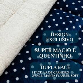 Composição: Face 1 coberta de Microfibra Soft Face 2 coberta de lã de Carneiro Enchimento manta 100% poliéster
