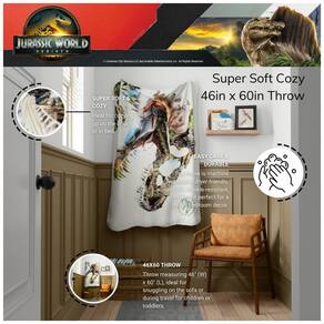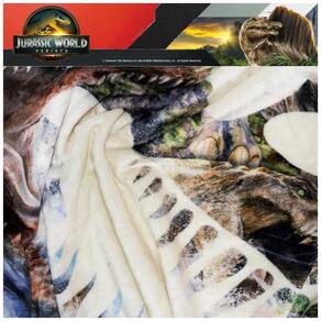 O cobertor infantil Jurassic World Rebirth da Franco é produzido em poliéster toque de seda, com textura macia e leve para uso em cama, sofá ou em viagens. A estampa apresenta personagens e dinossauros do universo Jurassic World, em composição colorida de tema infantil.