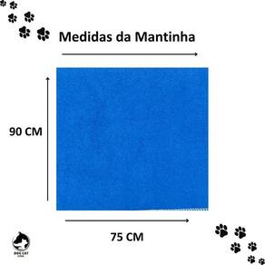 Especificações Técnicas: - Produto: Cobertor Mantinha Pet Para Cachorro Gato Cães - Azul - Medidas: Comprimento: 90cm / Largura: 75cm / Peso: 200 gramas - Tecido: Soft - Instruções de lavagem: Pode ser lavado à mão com sabão neutro, secar à sombra, não usar alvejantes, não indicado lavar em máquina.