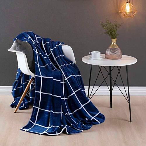 Cobertor Manta Minimalista Casal Queen Manta Flannel Quadrados Inverno 01 Peça - Azul Marinho - Única