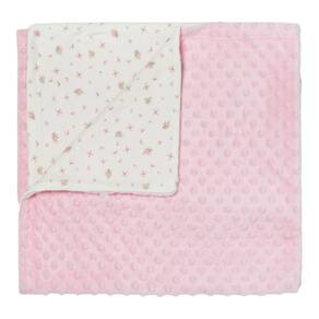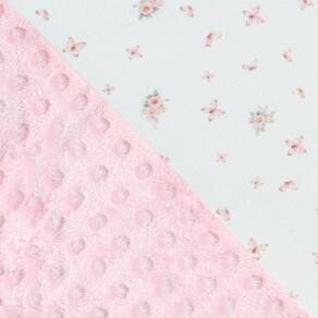 Características: De um lado em fleece com relevo poá, na cor Rosa. Outro lado em suedine estampado fundo off white.