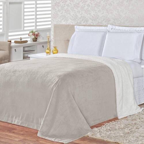 Cobertor Pele De Carneiro Sherpa Alaska Queen 01 Peça - Cinza