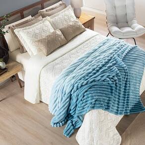 Cobertor Queen Fluffy Manta Flannel Ultrasoft - Acqua - Azul