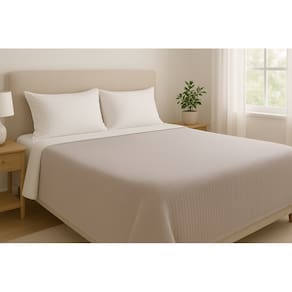 Sua dupla face oferece o melhor dos dois mundos: um lado com textura chenille em relevos lineares e o outro com superfície lisa e suave, proporcionando uma experiência única de aconchego. Sua cartela de cores é neutra e suave, permitindo combinar com qualquer decoração já existente no ambiente.