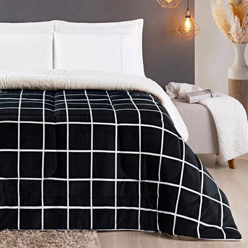 Cobertor De Solteiro Infantil Grosso Xadrez Dupla Face Antialergico AUSTIN Cores: Preto