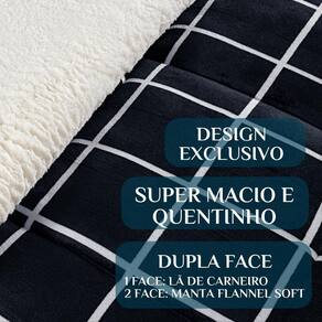 Composição: Face 1 coberta de Microfibra Soft Face 2 coberta de lã de Carneiro Enchimento manta 100% poliéster