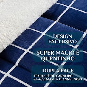 Composição: Face 1 coberta de Microfibra Soft Face 2 coberta de lã de Carneiro Enchimento manta 100% poliéster