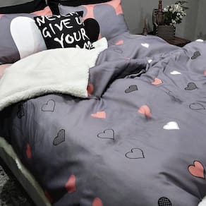 Cobertor Solteiro KING Love designer / Sherpa ( toque pele de carneiro )Mais um produto desenvolvido pela marca para compor lindos decor.Quentes como um cobertor e lindos como um edredom, em estampa exclusivaDa marca esse cobertor garante conforto e uma deliciosa sensação de abraço e bem estar. Ideal para se jogar em noites frias e decorar o seu cantinho com todo bom gosto que a marca oferece. O que vem na embalagem:01 Coberdrom Solteiro King de 240x200 largura02 Capas de travesseiros ( fronhas ) de 70x50 cm estampa love designerComposição:Tecido Superior: Microfibra 200 fios toque suave, estampa love designer ( umas das mais desejadas da marca ) Tecido anti peeling.Tecido Inferior: Sherpa ( pele de carneiro sintético ) 80% algodão 20% poliésterAlém de lindo, por serem confeccionados em estilo futon europeu, nossos edredons dispensa a necessidade de costurinhas tradicionais, em acabamento totalmente embutido, os jogos da marca deixam qualquer quarto rico, sem a obrigação de alisar e ajeitar o cobertor todos os dias ao se levantar. Dobrado, esticado ou apenas jogado sobre a cama, esse jogo garante um ar irreverente e moderno para o seu decor.Nossos cobertores são estampados em processo digital, não deixa cheiro e nãoDesbota com o tempo.Inspire-se e arrase no seu Decor. Marca: Casa Da Fama